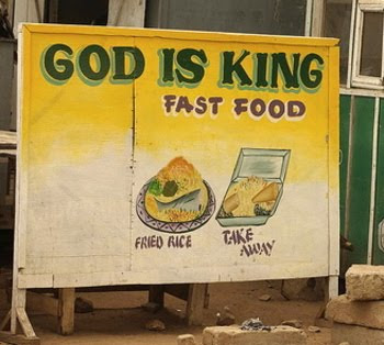 Before I went to Ghana, I had read that I could expect to see the country’s passion for Jesus reflected in the names of their businesses, but I didn’t expect 75% of shop names to have some kind of religious reference. Some of the more unusual names included included Blood of Christ Restaurant, Holy Canteen, and Jesus Loves Fashion. Unfortunately, while Ghanaians love the Lord, they hate cameras, so I didn’t get photos of most of the signs I saw as we whizzed by. Here are some snaps of some of my faves… there’s more in the official album.